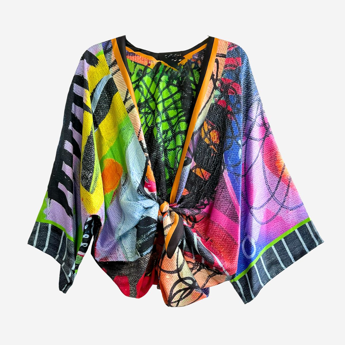 The Ubud Short Kimono by Isabelle Gougenheim combines luxurious silk construction with versatile styling options. This one-size-fits-all piece transitions effortlessly from intimate loungewear to sophisticated outerwear. The kimono's elegant design and sumptuous texture make it an essential wardrobe investment, instantly elevating casual or formal ensembles with its refined silhouette and premium craftsmanship.