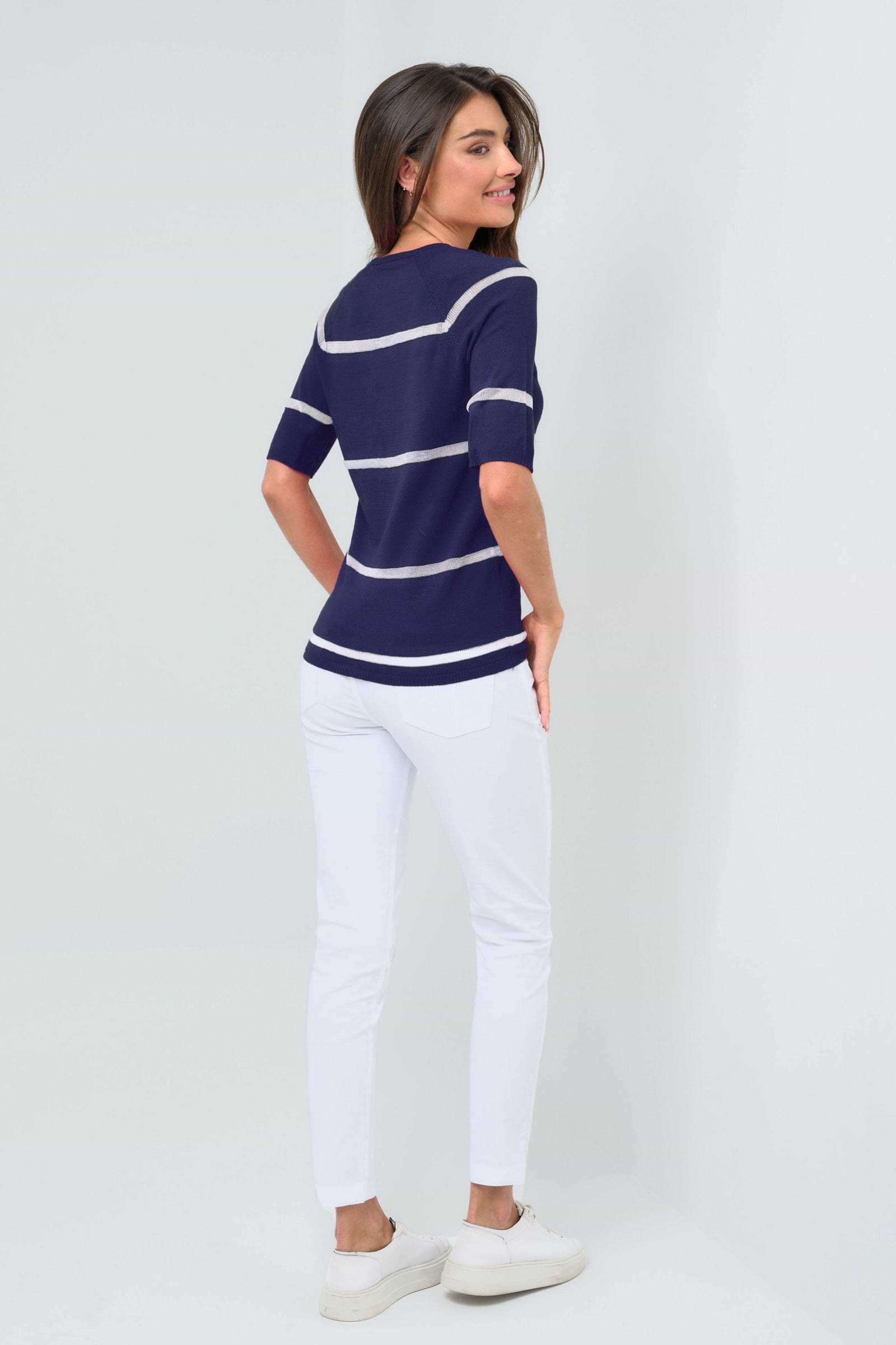 The Campbell Sheer Stripe Pullover Top combines style and comfort with its flattering 3/4 sleeves and bold sheer stripes. Designed to keep you cool and confident, this top is an ideal choice for warm weather, offering a sophisticated yet playful look perfect for summer days.